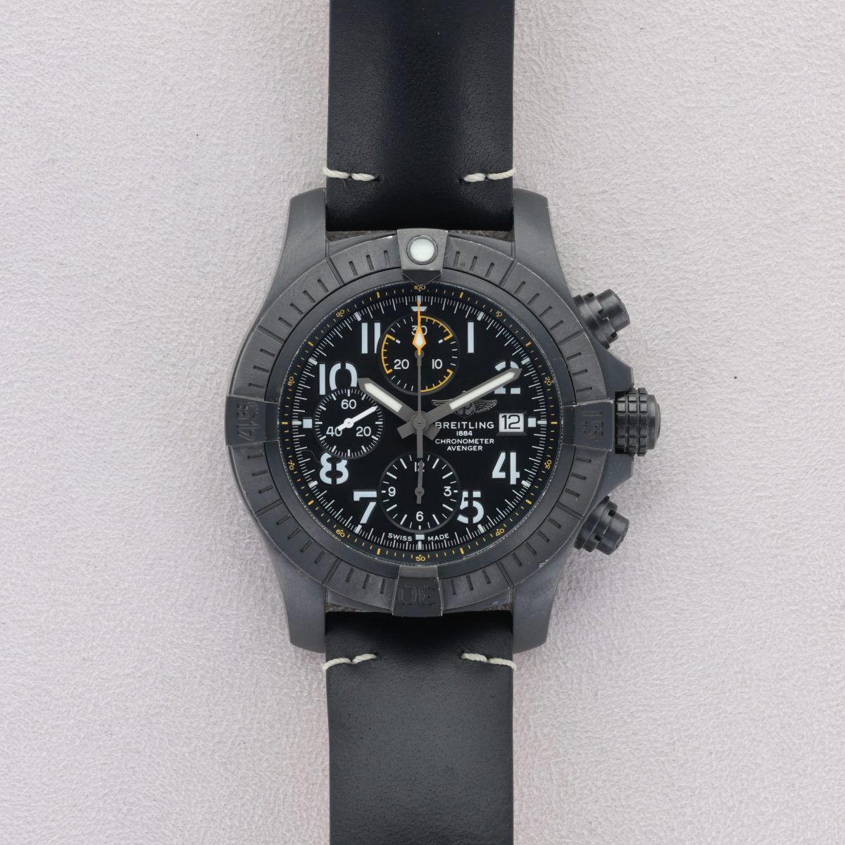 Audacieux, extrêmement robuste et résistant aux chocs, l’Avenger Chronographe 45 Night Mission associe une précision exceptionnelle à un design puissant, dans un boîtier léger. Véritable Breitling Avenger, il peut être utilisé avec des gants et offre une sécurité et une fiabilité inégalées à tous les aventuriers des airs.