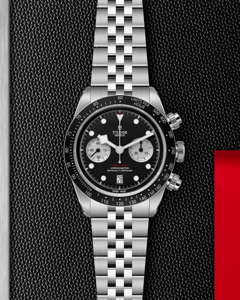 La Tudor Black Bay Chrono M79360N-0013 incarne l’alliance parfaite entre sport et élégance contemporaine. Son boîtier en acier de 41 mm est sublimé par une lunette fixe noire avec échelle tachymétrique. Le cadran noir, contrasté par des compteurs argentés et les aiguilles « Snowflake », assure une lisibilité optimale. Animée par le calibre manufacture MT5813 certifié COSC, elle offre précision, robustesse et 70 heures de réserve de marche. Un chronographe iconique, pensé pour les amateurs de montres sport-chic au caractère affirmé.