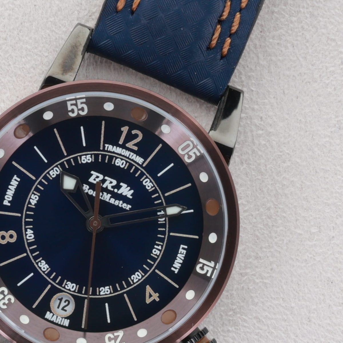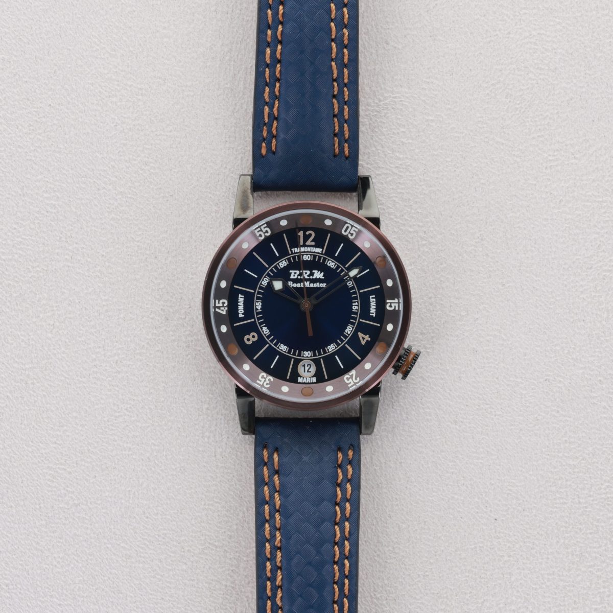 B.R.M Chronographes annonce fièrement le lancement de sa nouvelle collection de montres pour les passionnés de sports nautiques. Une des caractéristiques distinctives de cette collection est la présence d’un cadran de couleur bleu soleil sur chacun des modèles. Ce cadran, aux nuances de bleus qui rappellent les mouvements des vagues est orné de rayons lumineux semblables à celui du soleil.