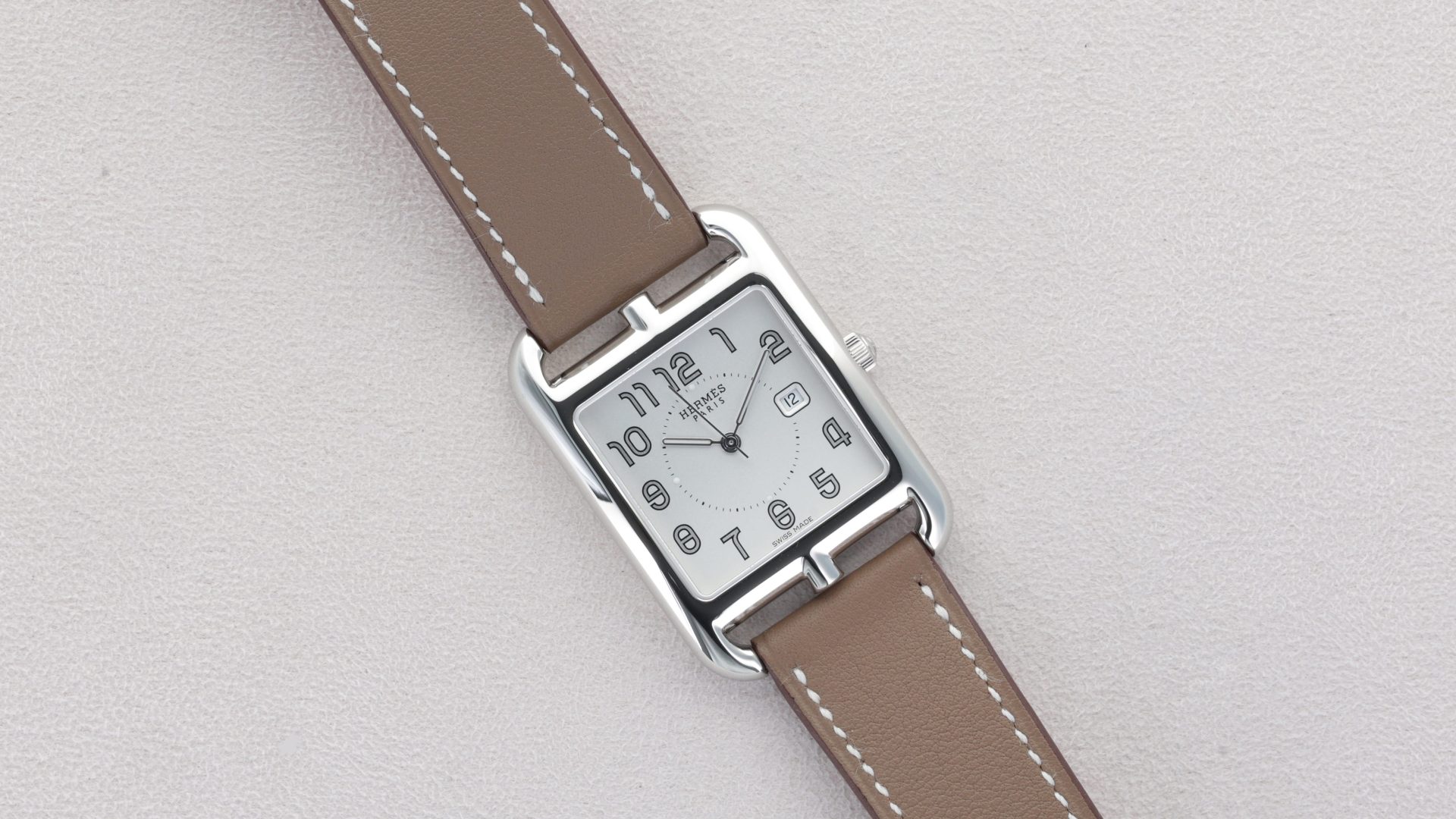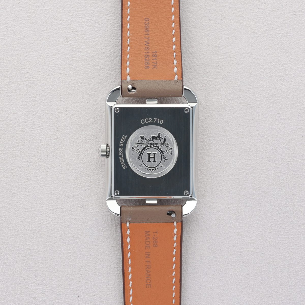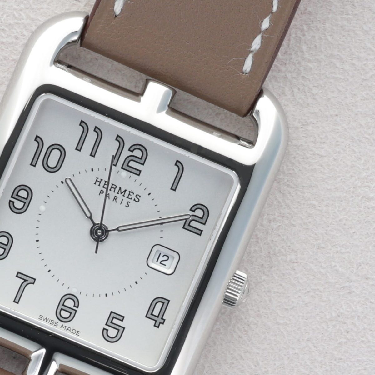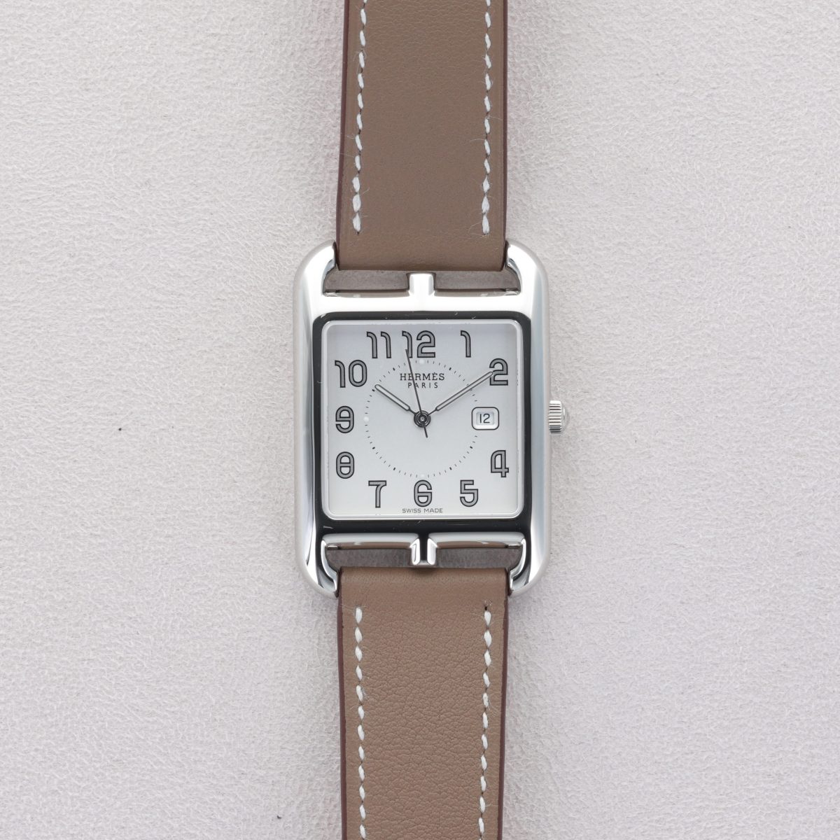La Hermès Cape Cod Large séduit par son design iconique inspiré de la célèbre Chaîne d’Ancre de la Maison. Son boîtier rectangulaire en acier souligne un élégant cadran argenté, aux chiffres arabes stylisés emblématiques d’Hermès. Le bracelet en cuir apporte une touche de raffinement et de confort au quotidien. Animée par un mouvement à quartz précis et fiable, elle allie esthétique et praticité. Une montre au style intemporel, parfaite pour accompagner chaque instant avec élégance.