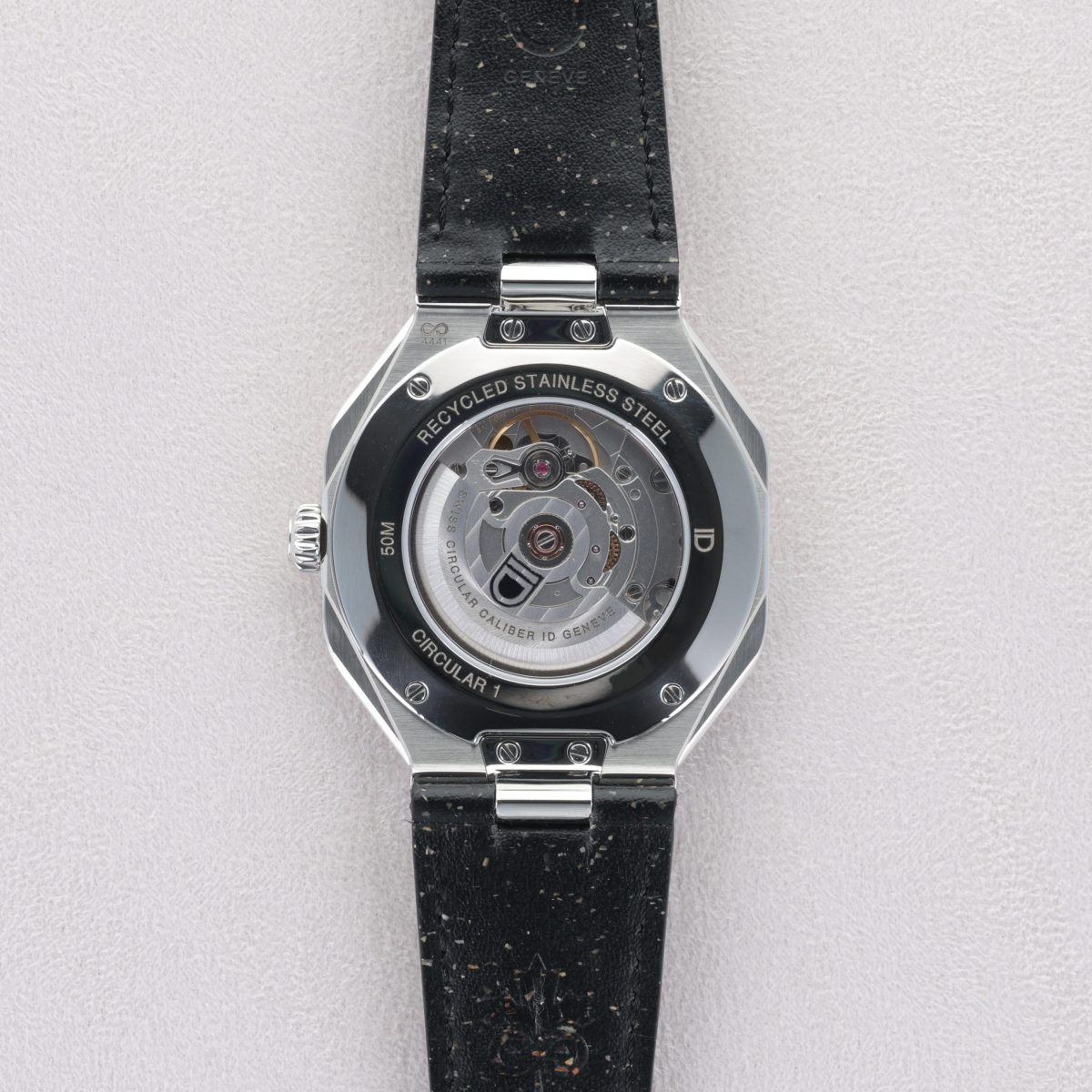 La collection Circular 1 est la première pièce iconique créée par ID Genève. L’acier inoxydable du boîtier de notre montre est local et traçable. Il provient des déchets d’une quarantaine d’entreprises horlogères du Jura et des environs. La déchèterie collecte les rebuts, les flashe, les trie et les stocke. Une fois la quantité minimale atteinte, ces déchets sont refondus à moins de 200 kilomètres du Jura.