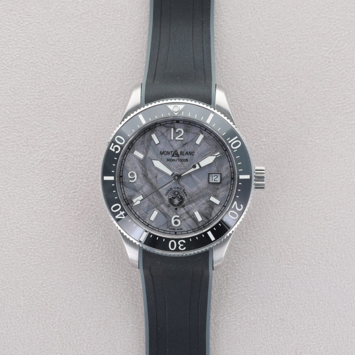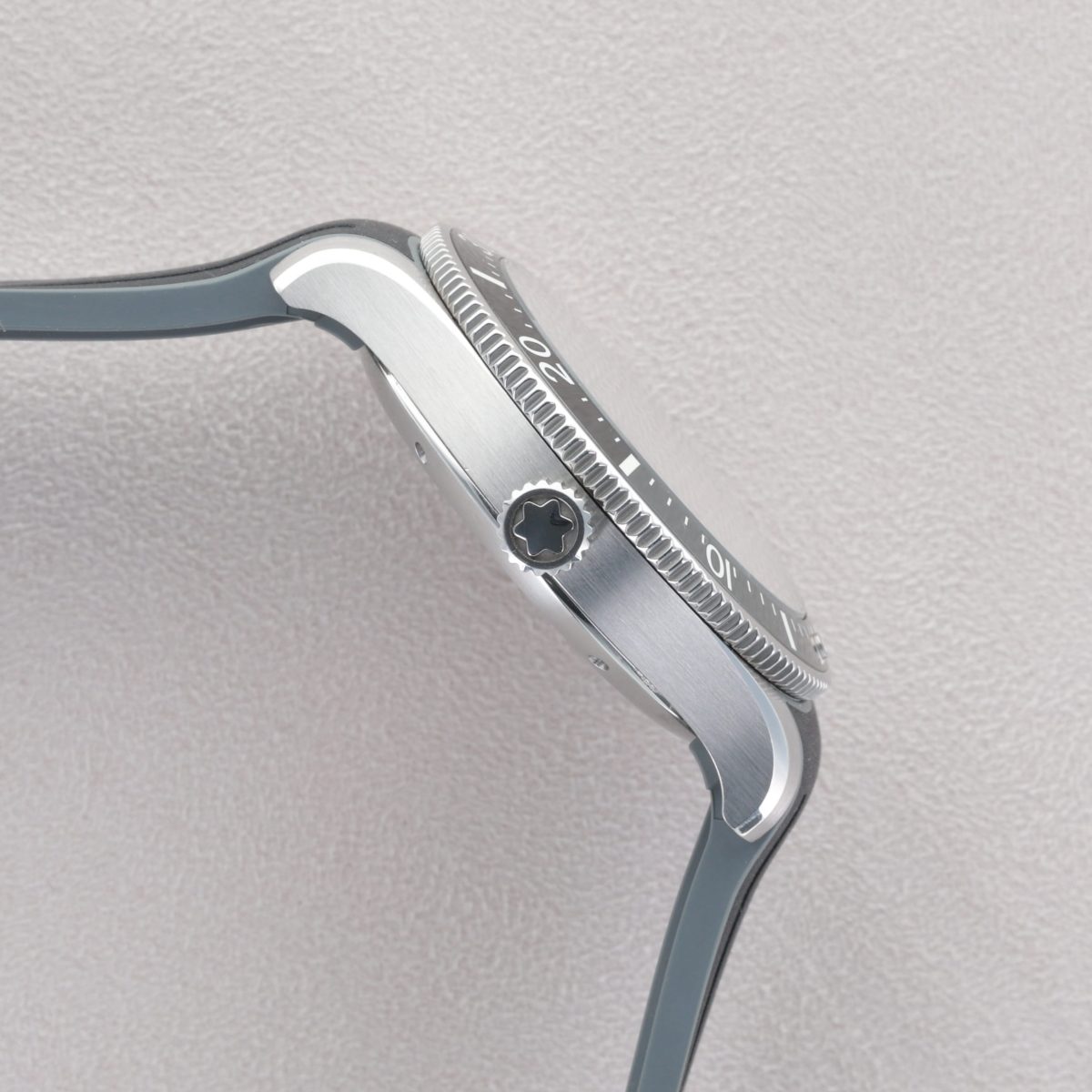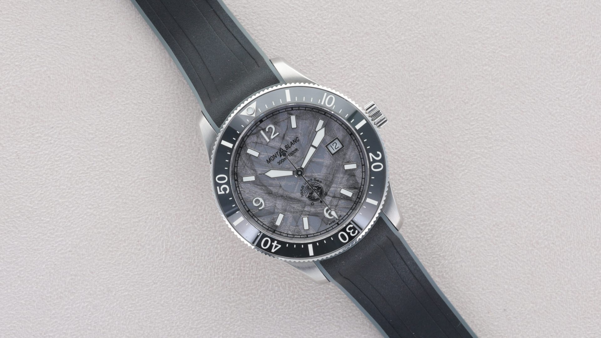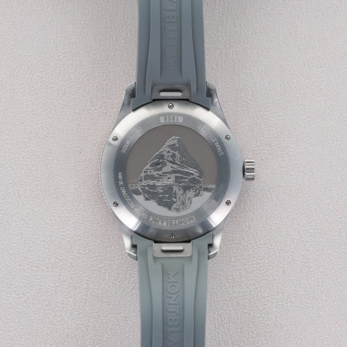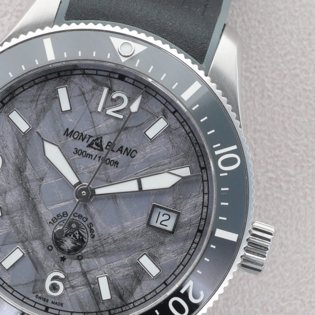 La Montblanc 1858 Iced Sea Automatic Date est une montre de plongée de luxe, inspirée par la Mer de Glace et fabriquée avec la technique traditionnelle du gratté-boisé. Son cadran gris à motif glacier évoque les profondeurs glaciales, avec des index et chiffres arabes luminescents.