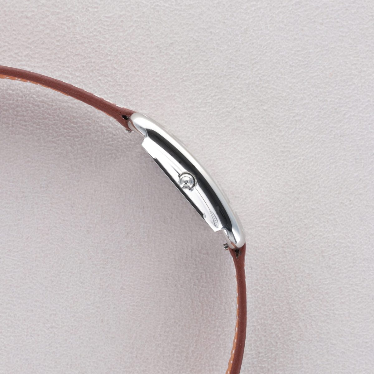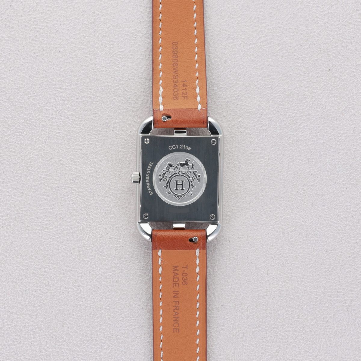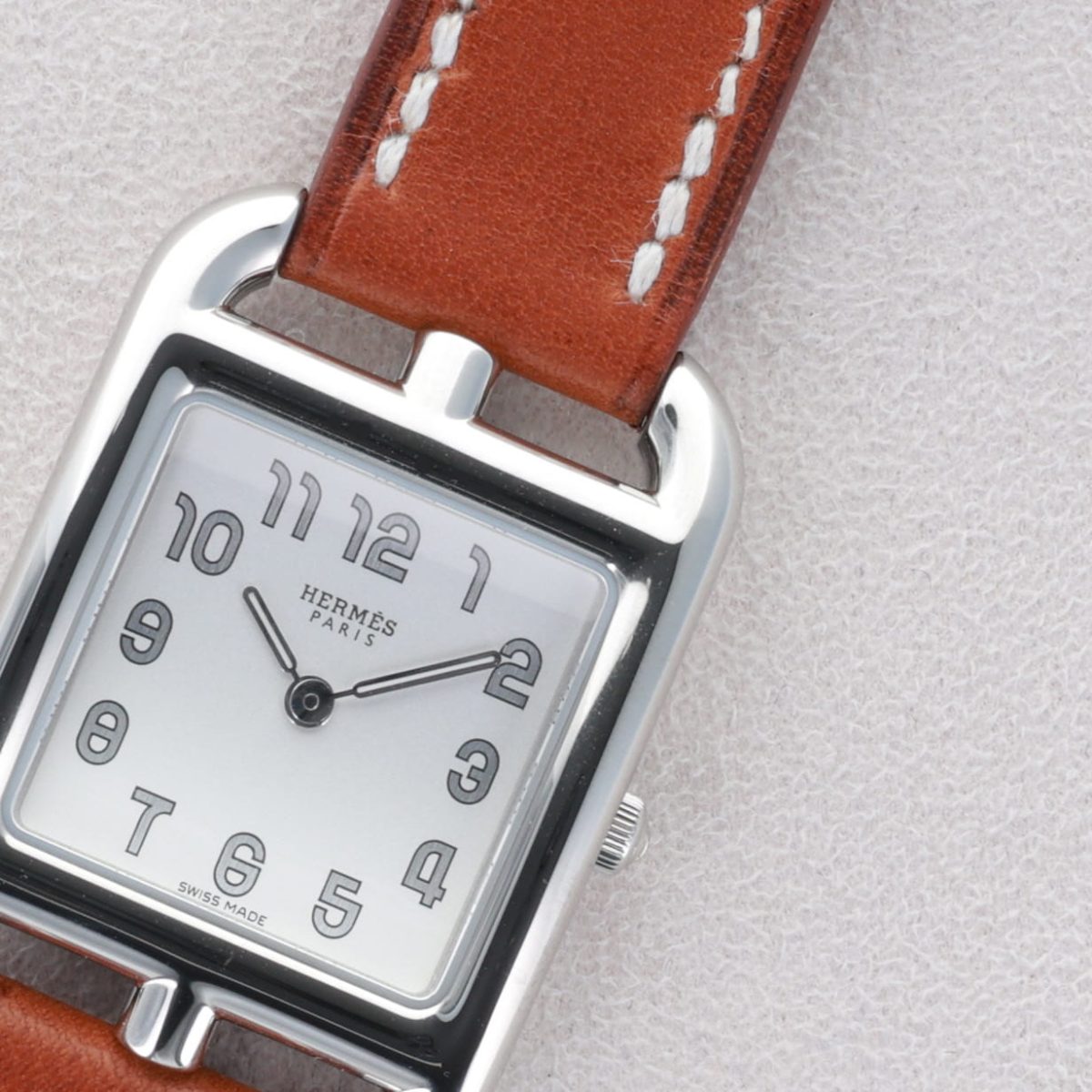 La Hermès Cape Cod séduit par son design iconique inspiré de la célèbre Chaîne d’Ancre de la Maison. Son boîtier rectangulaire en acier souligne un élégant cadran argenté, aux chiffres arabes stylisés emblématiques d’Hermès. Le bracelet en cuir apporte une touche de raffinement et de confort au quotidien. Animée par un mouvement à quartz précis et fiable, elle allie esthétique et praticité. Une montre au style intemporel, parfaite pour accompagner chaque instant avec élégance.