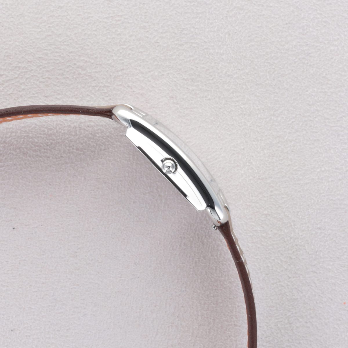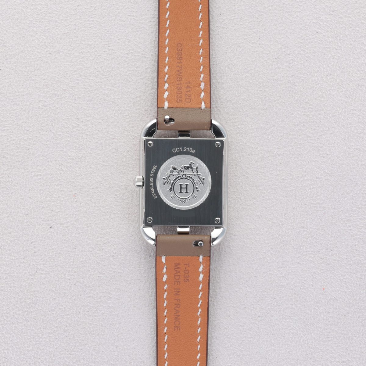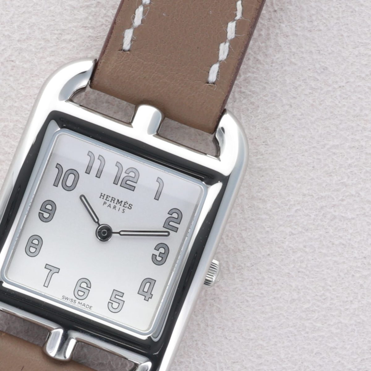 La Hermès Cape Cod séduit par son design iconique inspiré de la célèbre Chaîne d’Ancre de la Maison. Son boîtier rectangulaire en acier souligne un élégant cadran argenté, aux chiffres arabes stylisés emblématiques d’Hermès. Le bracelet en cuir apporte une touche de raffinement et de confort au quotidien. Animée par un mouvement à quartz précis et fiable, elle allie esthétique et praticité. Une montre au style intemporel, parfaite pour accompagner chaque instant avec élégance.